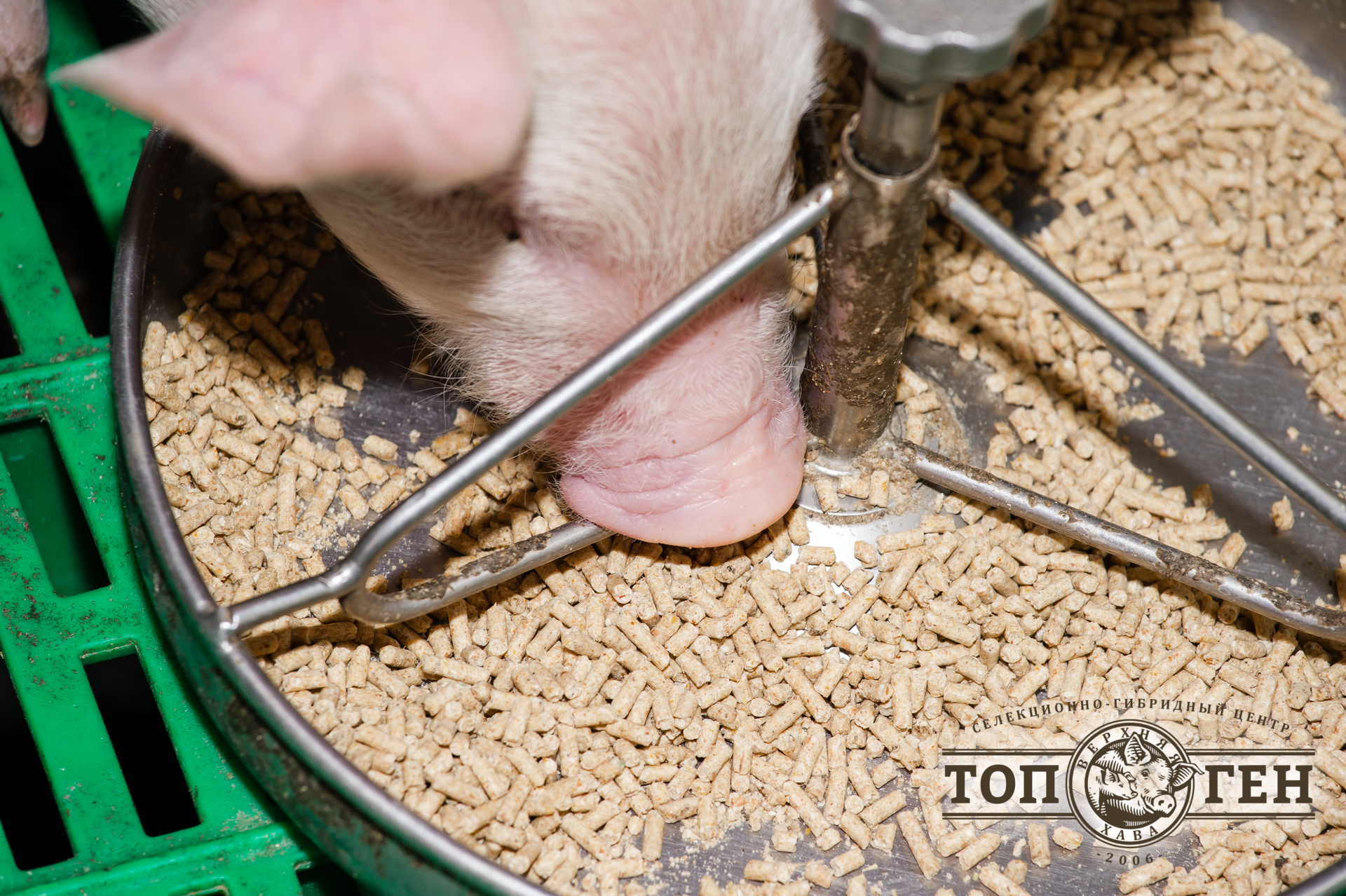 Ассортимент вырабатываемых комбикормов включает рецепты для всех половозрастных групп племенных и товарных свиней селекционно-гибридного центра. Исключение — престартерные корма, их покупают. Действующие рационы отличаются от рекомендованных для кормленияпервоначально завезенных племенных животных. Комбикорма максимально адаптированы к потребностям в питательности животных зарегистрированных генетических линий. Например, эти свиньи имеют развитый ЖКТ, благодаря чему хорошо усваивают белок. Это дало основание снизить его содержание в рецептах без ущерба для продуктивности, более того, она увеличивается.