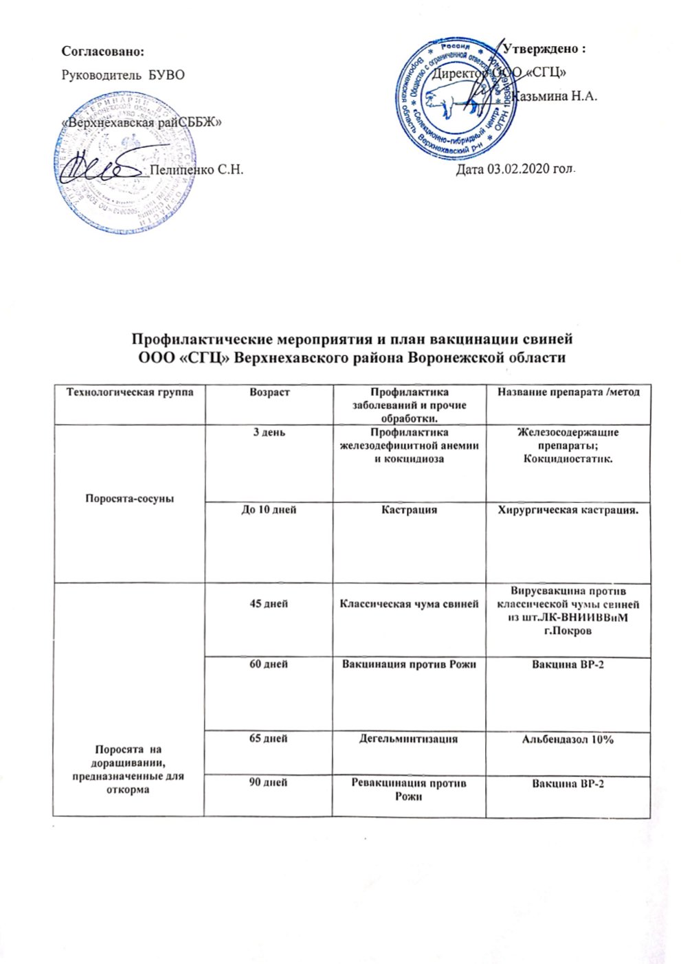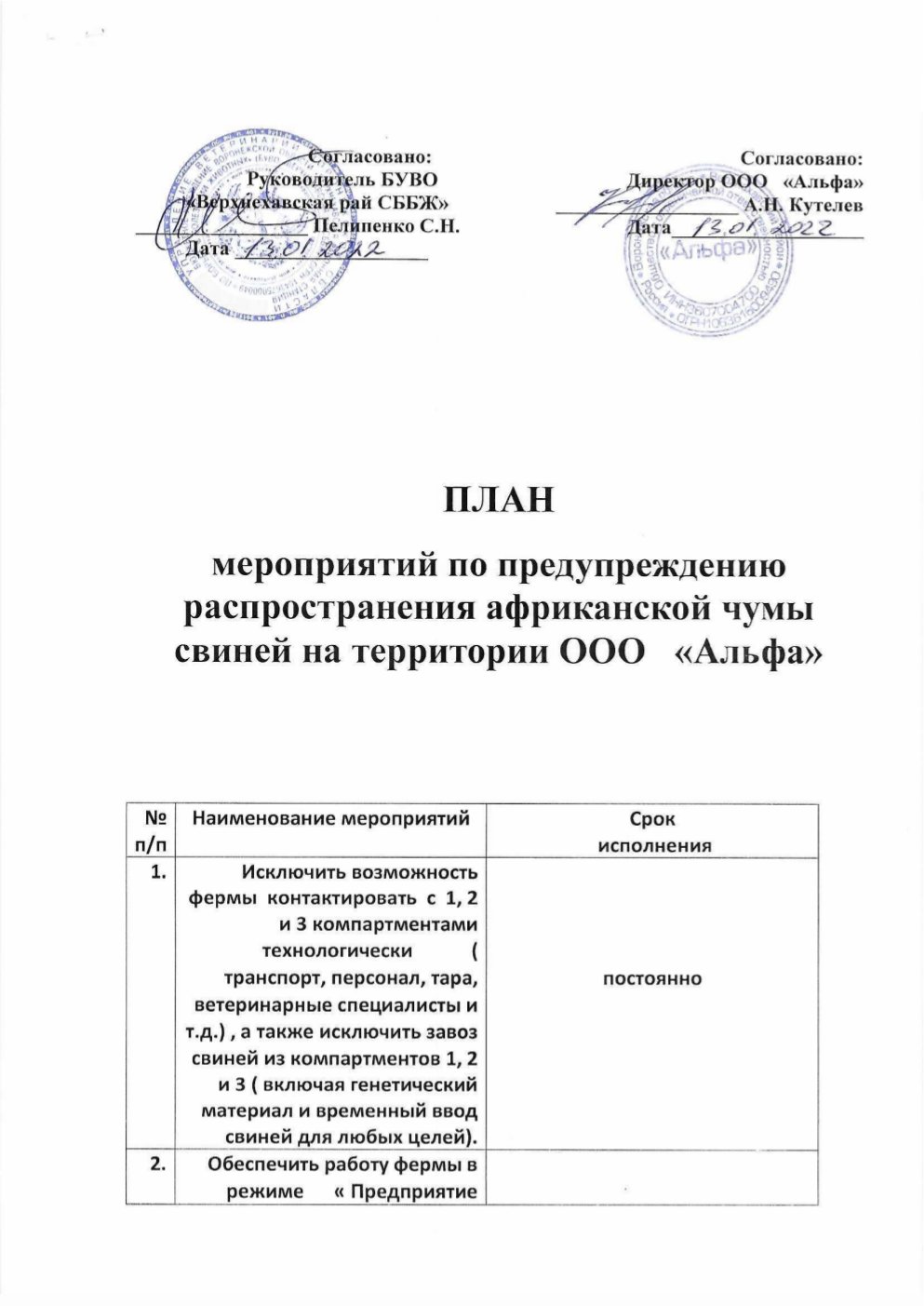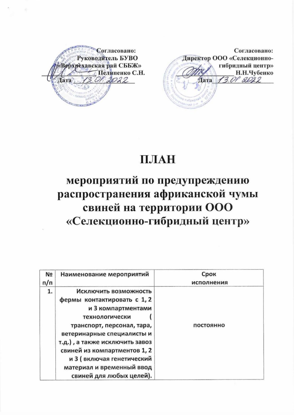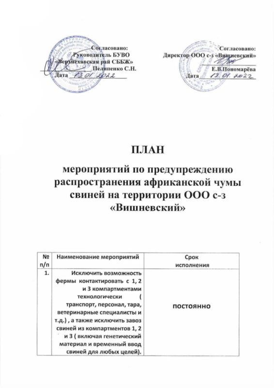 План профилактических мероприятий