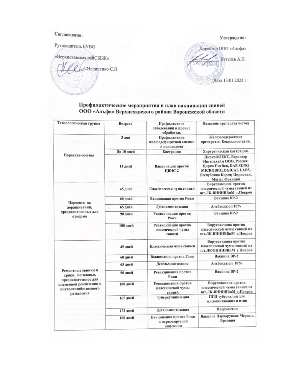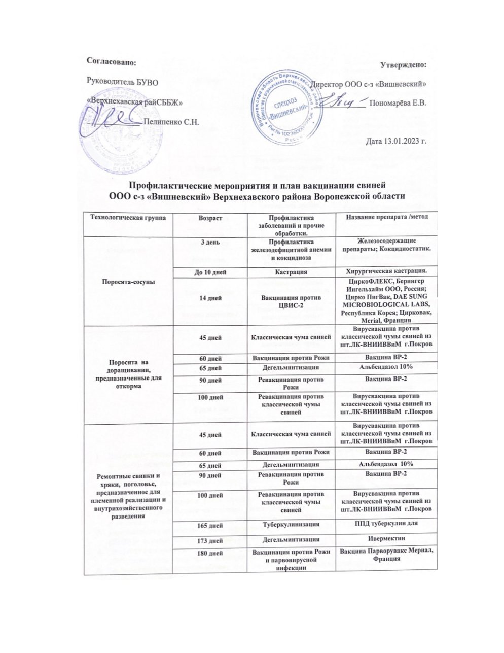 Архив данных по плана профилактических мероприятий